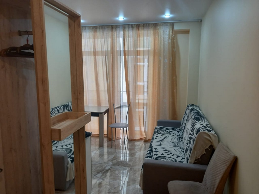 Срочная продажа! Студия 22м2, г. Сочи, ул. Фабрициуса. На 3 этаже. Рядом с парком Дендрарий. Окно и балкон с видом на парк и двор. Ремонт, мебель, техника, тёплые полы. Сделка нотариальная.